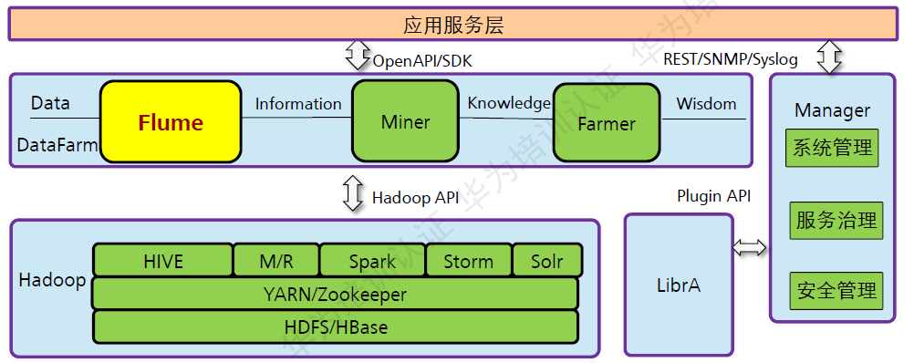 Flume支持将集群外的日志文件采集并归档到HDFS、HBase、Kafka上,供上层应用对数据分析、清洗数据使用。