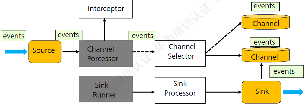 Interceptor:拦截器,主要作用是将采集到的数据根据用户的配置进行过滤和修饰。