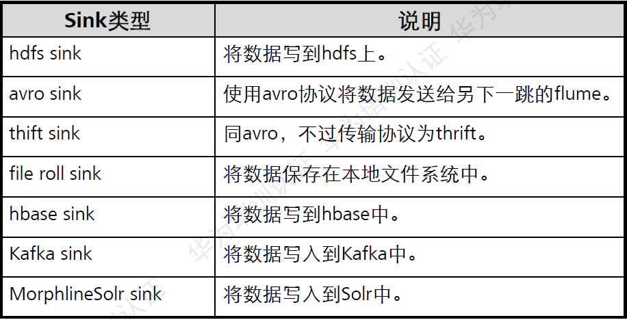 Sink负责将events传输到下一跳或最终目的,成功完成后将events从channel移除。