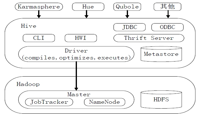当用户向Hive输入一段命令或查询时,Hive需要与Hadoop交互工作来完成该操作: