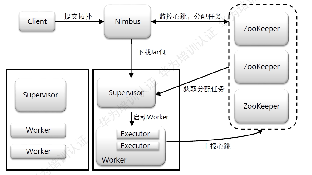 Supervisor会去Zookeeper集群上认领自己的Task,通知自己的Worker进程进行Task的处理。