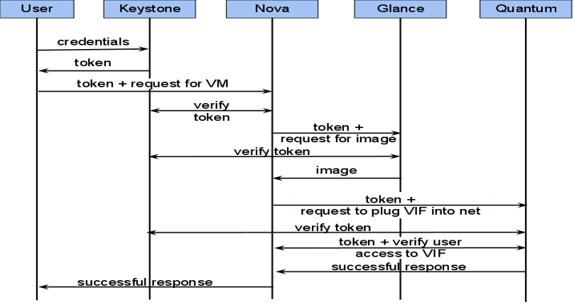 nova-compute通过keystone的RESTfull API拿到认证的token,并通过HTTP请求glance-api获取创建虚拟机所需要镜像。