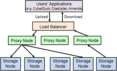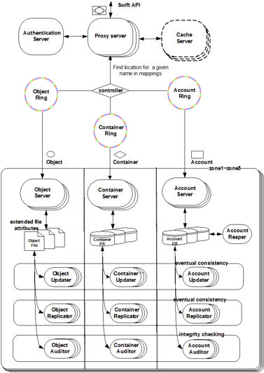 通过一个 RESTful,基于HTTP的应用程序接口存储和任意检索的非结构化数据对象。它拥有高容错机制,基于数据复制和可扩展架构。它的实现并像是一个文件服务器需要挂载目录。在此种方式下,它写入对象和文件到多个硬盘中,以确保数据是在集群内跨服务器的多份复制。