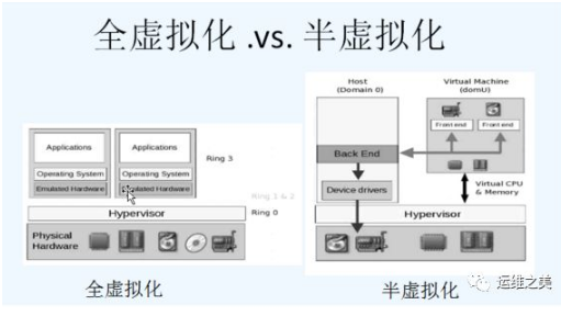 注:针对 IO 层面半虚拟化要比全虚拟化要好,因为磁盘 IO 多一层必定会慢。一般说 IO 就是网络 IO 和磁盘 IO,因为这两个相对而言是比较慢的。