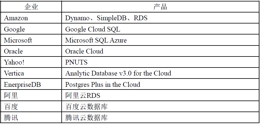 云数据库厂商的概述: