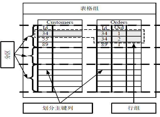 表格组中所有划分主键相同的行集合称为行组(row group)