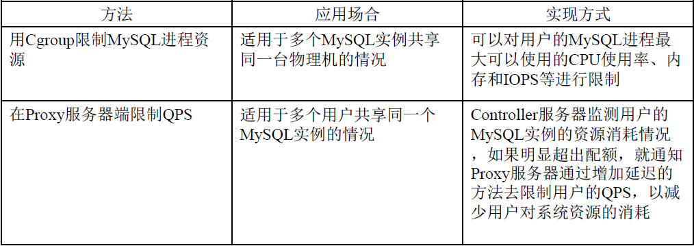 Proxy服务器向用户提供访问MySQL数据库的服务,它完全实现了MySQL协议,用户可以使用已有的MySQL客户端连接到Proxy服务器,Proxy服务器通过用户名获取到用户的认证信息、资源配额的限制(例如QPS、IOPS(I/O Per Second)、最大连接数等),以及后台MySQL实例的地址,然后,用户的SQL查询请求会被转发到相应的MySQL实例上。除了数据路由的基本功能外,Proxy服务器中还实现了很多重要的功能,主要包括屏蔽MySQL实例故障、读写分离、分库分表、资源隔离、记录用户访问日志等。