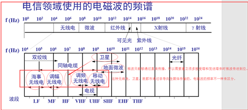 非导向传输媒体就是指自由空间,其中的电磁波传输被称为无线传输。 通俗来讲,就是通过无线,不用那种固态的媒体,在空气中自由传播,在空气中传播的波很多,如何分别呢,就是通过每个波的频率不一样